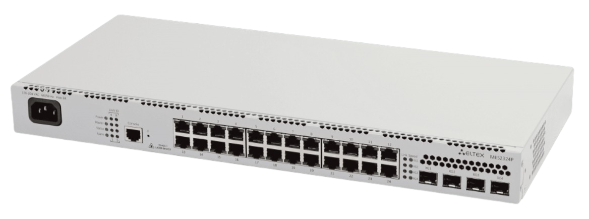 Eltex MES2324P представляет из себя 28-ми портовый управляемый коммутатор уровня L2+ с поддержкой PoE.